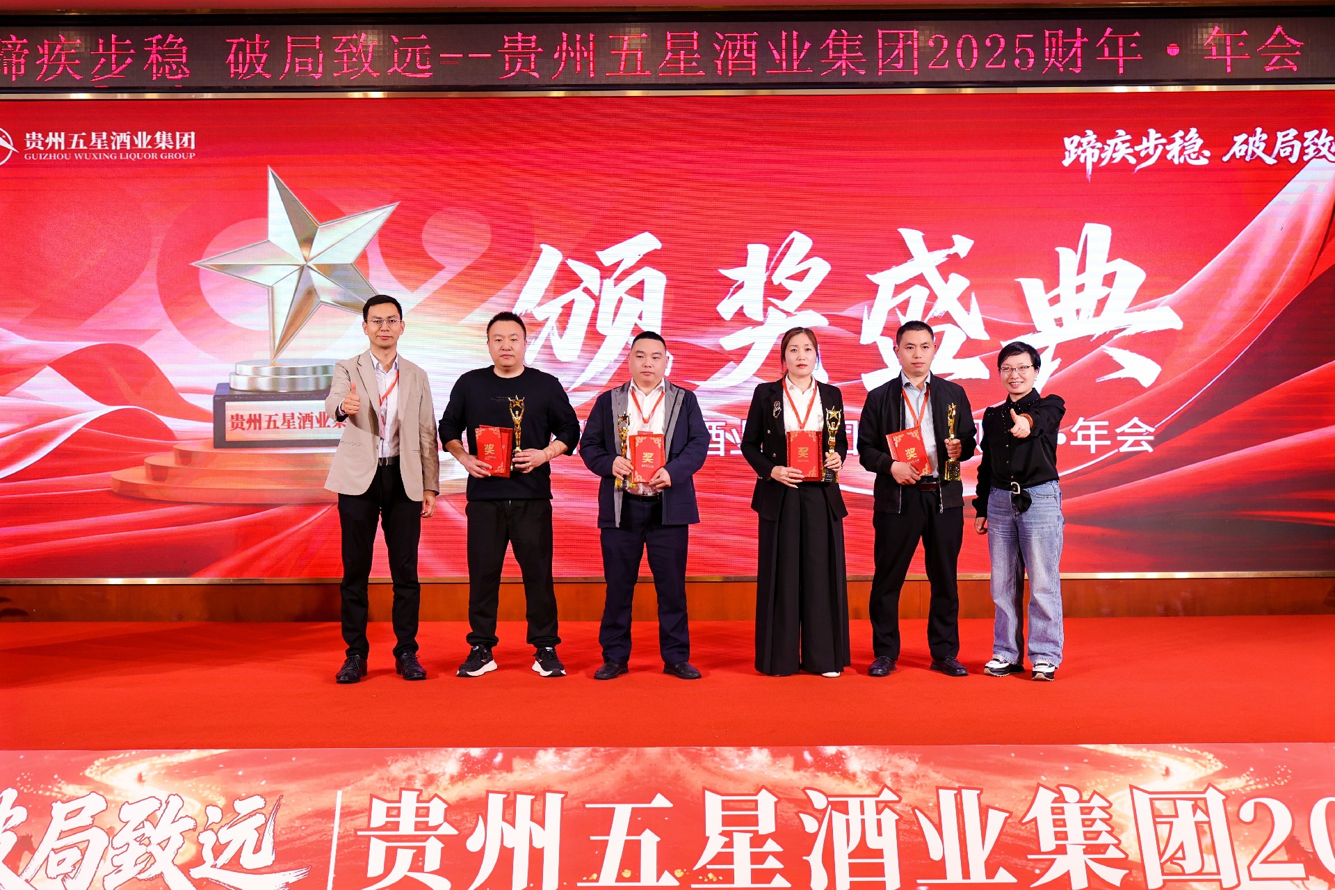 骏马奔腾开盛景,五星闪耀启新程。近日,贵州五星酒业集团以“蹄疾步稳 破局致远”为主题的2025财年·年会圆满召开。此次年会不仅是对过去一年辉煌成就的总结,更是对未来发展的宏伟蓝图的擘画,其中,“稳”字成为了贯穿全年规划的核心关键词。